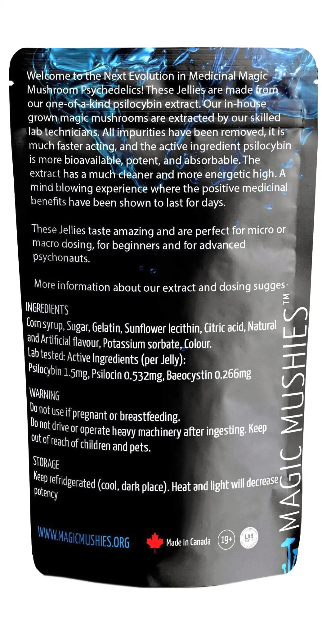 These Jellies are for Beginner to Experienced Magic Mushroom Users. Made from a highly refined Psilocybin extract all impurities have been removed and the active ingredient Psilocybin is incredibly bioavailable, readily absorbable and therefore more potent, and much faster acting then when consumed in dried magic mushrooms.