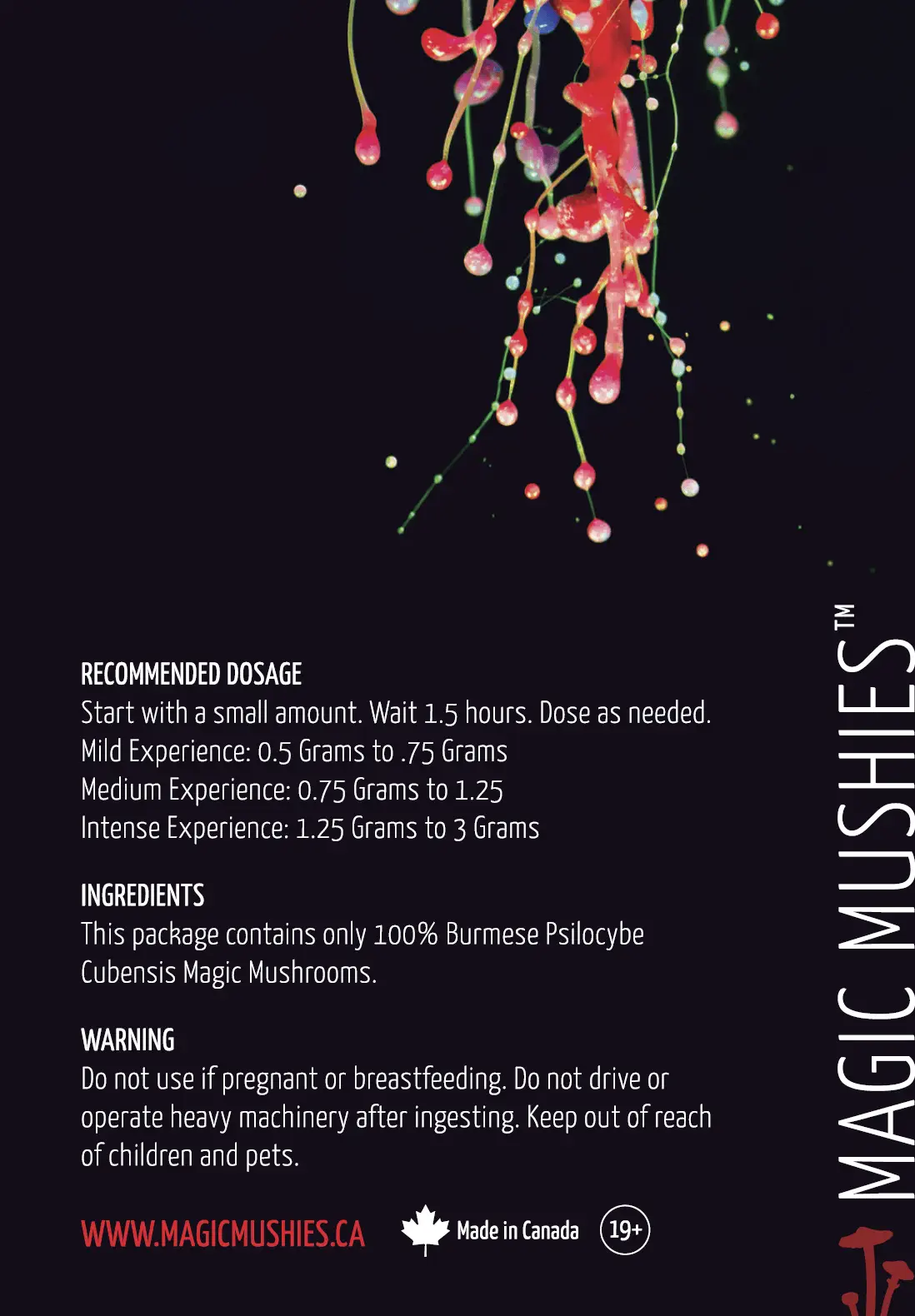 Users report Burmese Magic Mushrooms to have a strong high but with reduced amounts of deep insight. The effects of magic mushrooms will depend greatly on your set and setting and will differ from person to person.