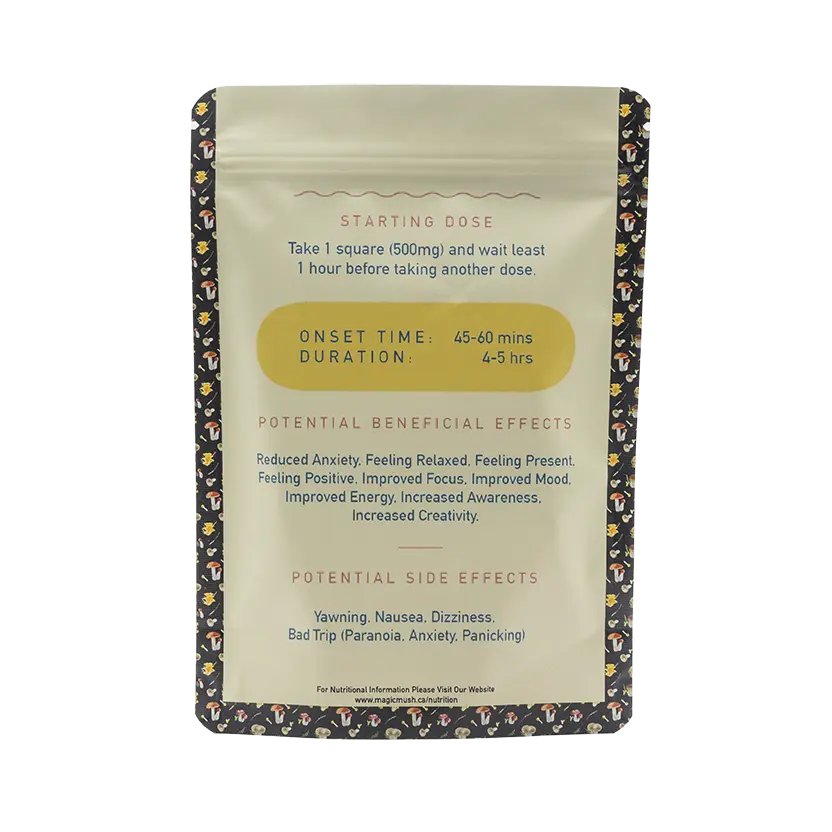 So, whether you’re looking for a bit of fun, a mental boost, or maybe even a spiritual awakening, our Golden Teacher Psilocybin Chocolate Bar is here to take you on a wild ride. Get ready to elevate your senses and embark on an adventure like no other!