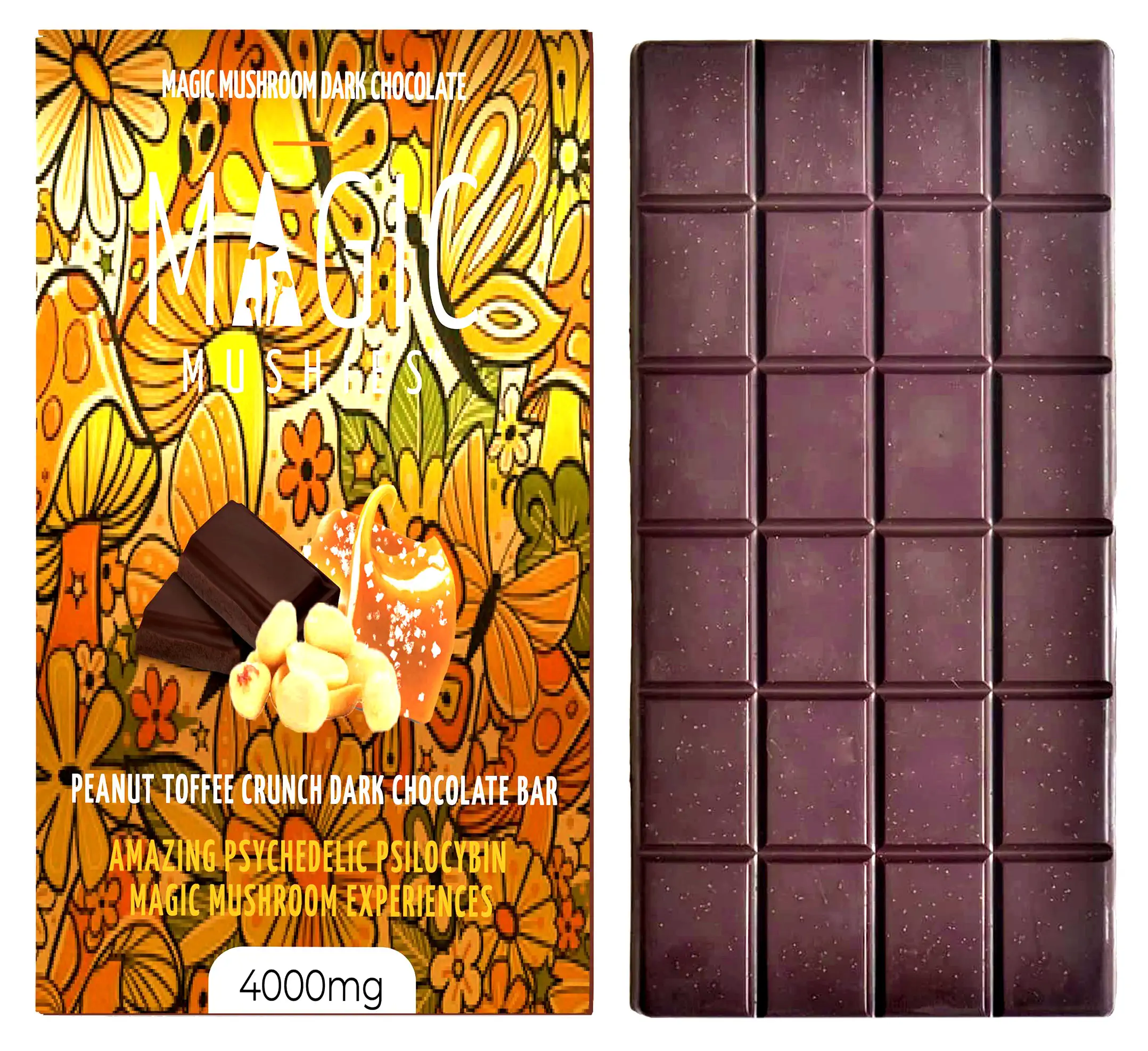- 4000mg of Potent Magic Mushrooms per chocolate bar