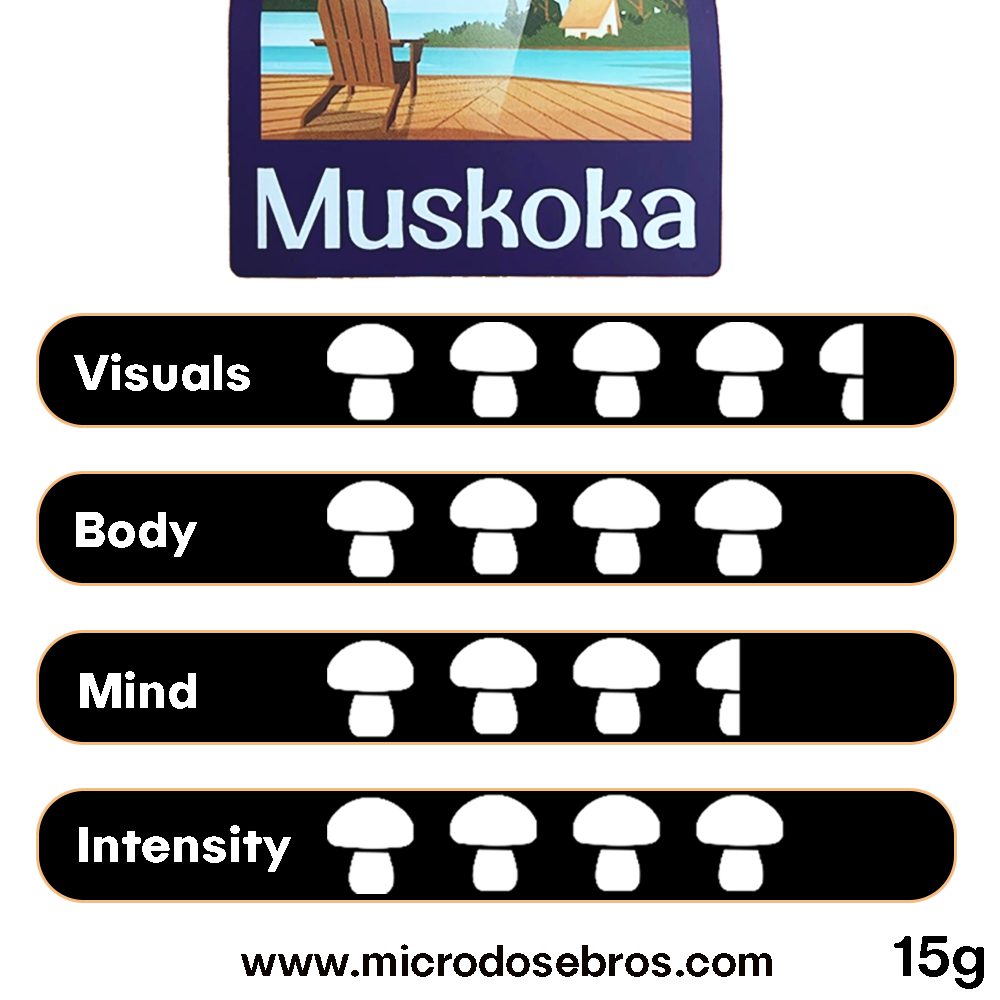 The Muskoka strain (Psilocybe Galindoii) originates from Mexico and Georgia (USA) and is known for its powerful effects, out-of-the-box thinking, and visually immersive trips.