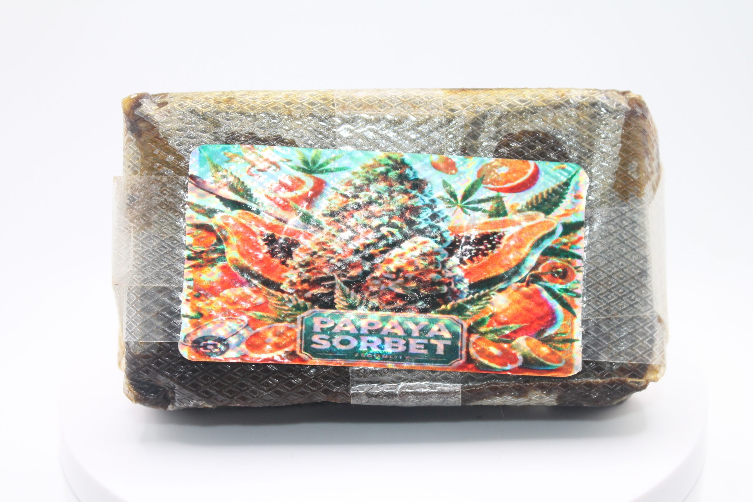 Indulge in the tropical, creamy essence of Papaya Sorbet Triple Filter, a premium solventless concentrate refined through a three-stage filtration process for exceptional purity and melt quality. Crafted from high-quality, resin-rich material, this extract delivers a clean, vibrant flavor profile with unmatched smoothness and potency.