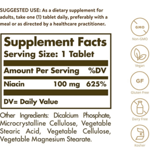 Boost energy and support cardiovascular health with Solgar Niacin Vitamin B3 100 mg Tablets. This 100-count supplement promotes healthy circulation, nervous system function, and metabolism. Non-GMO, gluten-free, and vegan-friendly. Shop now!