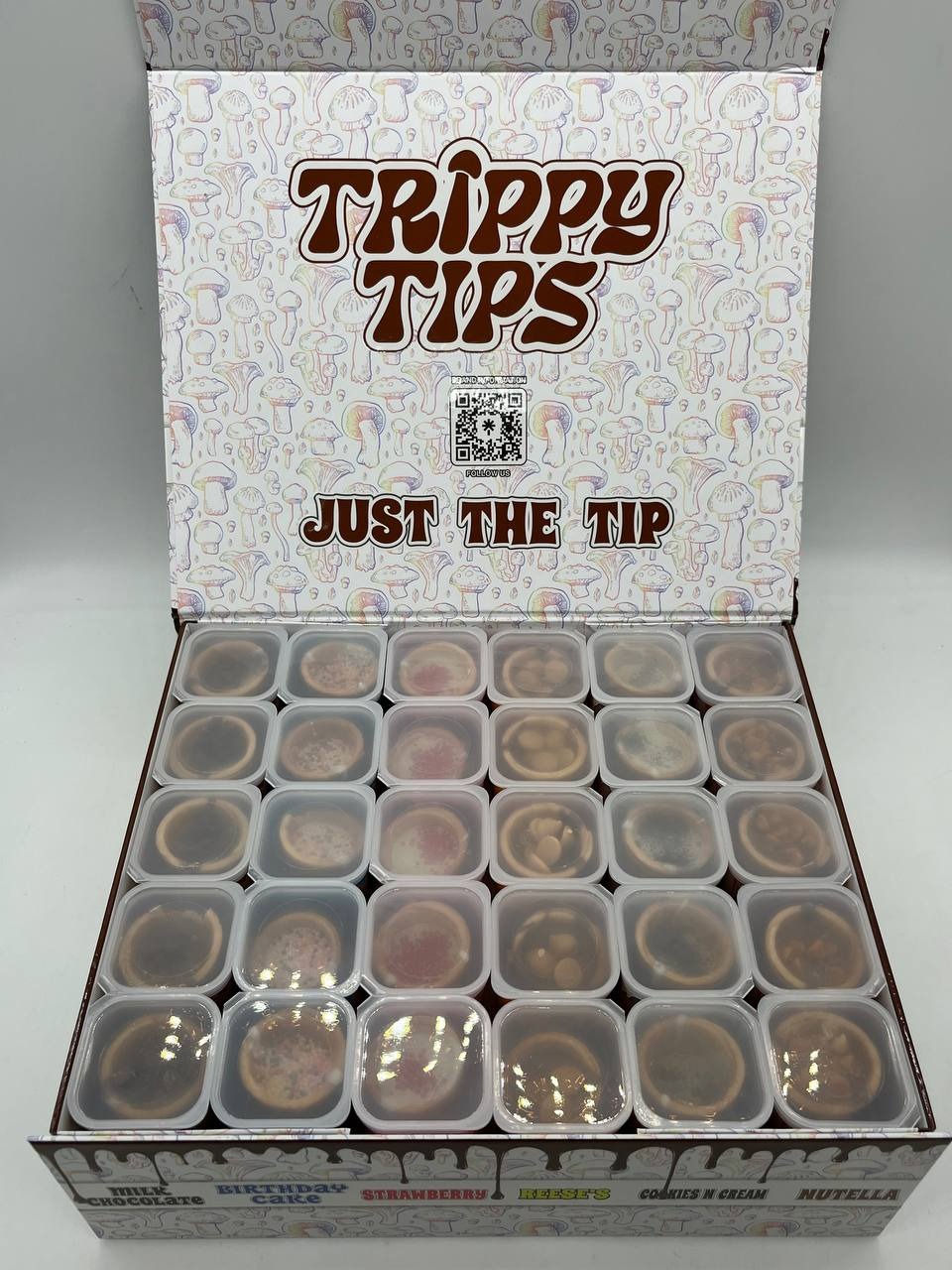Trippy Tips Mushroom Cones seem to be a unique product that combines milk chocolate flavored cones infused with psychedelic mushrooms, such as psilocybin. They are available in various flavors, including Nutella, Reeses, Cookies & Cream, and more. The cones are designed to provide a visually striking and disorienting effect, evoking a sense of trippiness or altered perception.